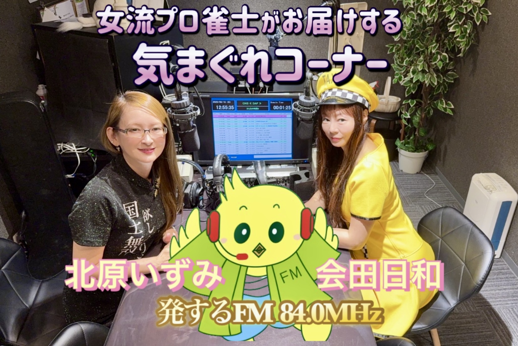 金曜日の「きまぐれコーナー」でスペシャルゲストが登場します!女流プロ雀士の会田日和さん!と北原いずみさん!です。お二人は日本プロ麻雀協会の所属で多くのタイトル戦に出場しています。会田日和さんはコスプレ雀士としても有名でスタジオにもコスプレで登場!北原いずみさんはあやまんJAPANユースメンバーでもあります。今回は麻雀に関わる裏話やエピソードなど盛りだくさんです。麻雀プロになるには?プロテストについて。麻雀ゲストでのエピソードやお悩みコーナーなど、麻雀に興味のある方はもちろん、麻雀をやったことのない方も世界観を堪能できる15分!もちろん、メッセージやお便りも受け付けていますよ!